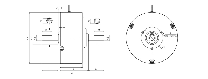 HZ-A型雙出軸磁滯制動器外形尺寸