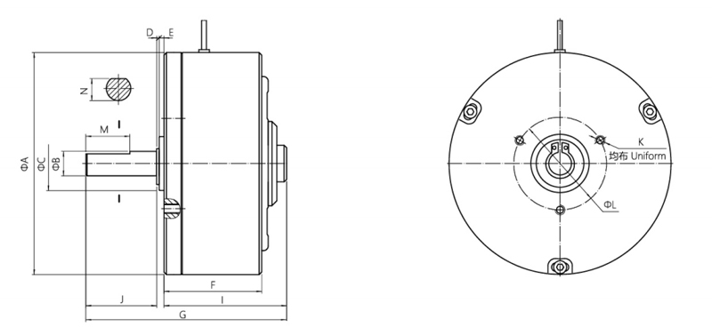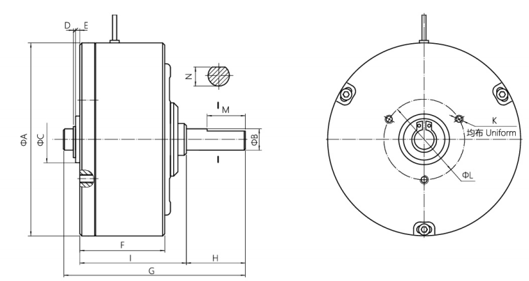 以自冷式磁滯制動器為基礎(chǔ),內(nèi)部加以水冷卻通道,通過水冷卻來吸收連續(xù)滑差產(chǎn)生的熱量。具有噪音低、功率大的優(yōu)點。廣泛應(yīng)用于測試負(fù)載和高速大張力放卷場合。(具體尺寸請來電索。