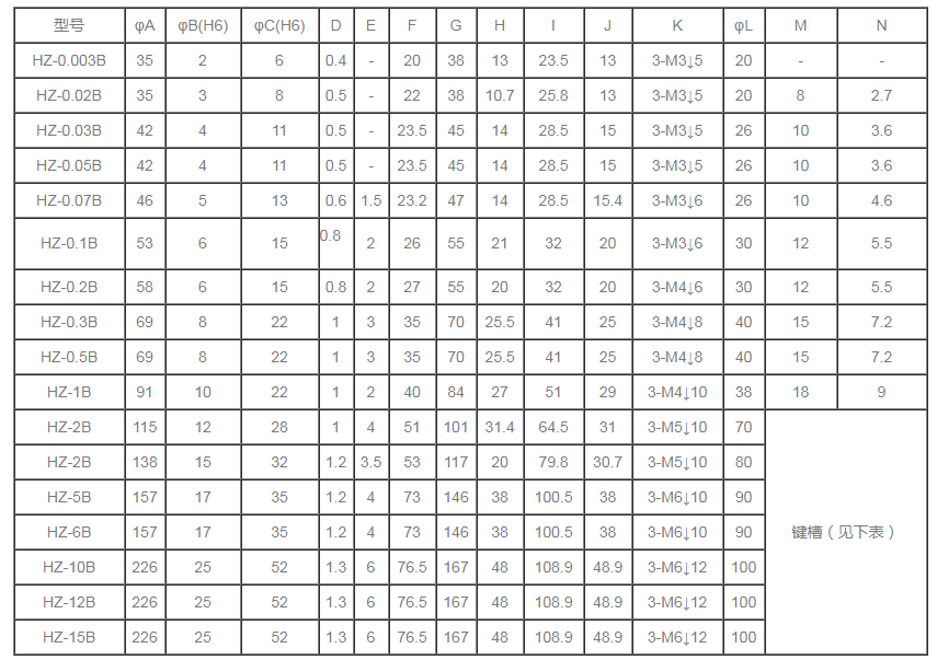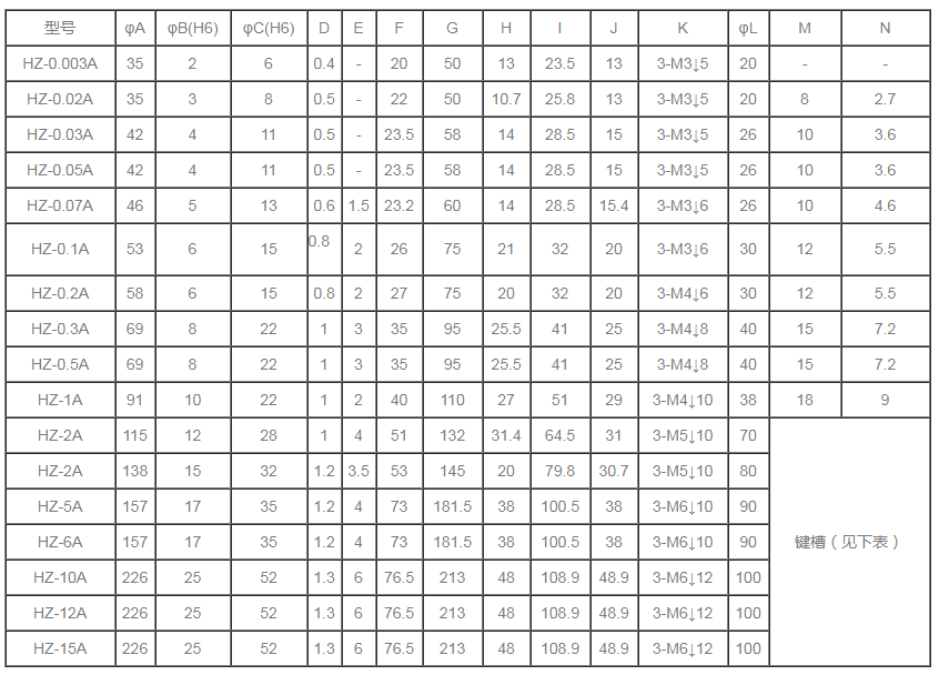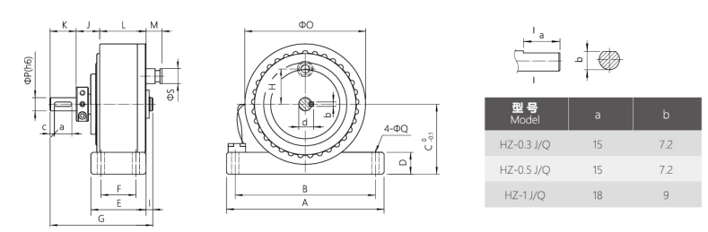 分為單出軸磁滯制動器,雙出軸磁滯制動器,空心軸磁滯制動器。 HZ自冷式磁滯制動器規(guī)格參數(shù)