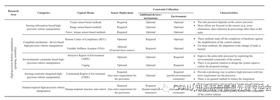 在高精度的抓取和裝配工作中,僅僅依靠機械手本身的精度不能滿足任務(wù)要求。近期在IEEE TRANSACTIONS ON MECHATRONICS 上發(fā)表的一篇名為《A Survey of Methods and Strategies for High-Precision RoboticGrasping and Assembly Tasks—Some New Trends》的文章對近年來在機器人高精度抓取和裝配方面的研究工作進行了分類、回顧和比較,并闡述了該領(lǐng)域的研究趨勢。